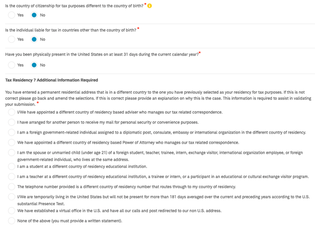 После заполнения первой части появится сообщение, что адрес у вас в UK, а не в стране, где вы гражданин. Нужно выбрать «None of the above» и написать простое объяснение в стиле: «I am a citizen of ____, but currently reside and pay taxes in the United Kingdom».